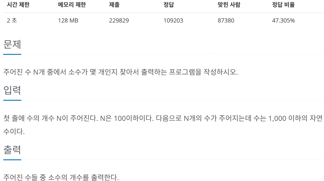 소수란 1과 자기자신을 제외하고 약수를 가지지 않는 1보다 큰 자연수를 말한다.